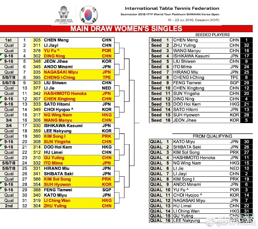 顾玉婷vs伊藤美诚(日本)7月19日16:00