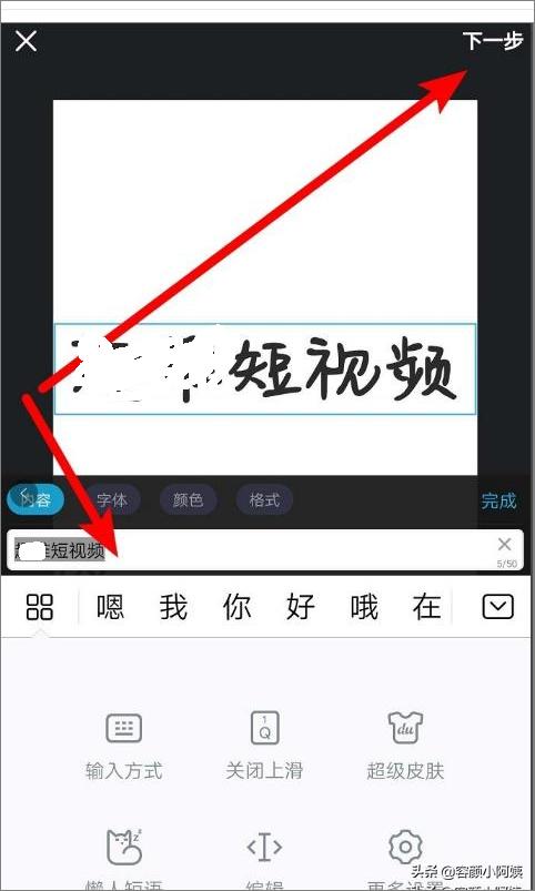 4、点击文字,修改自己想要的文字,再点击“下一步”。
