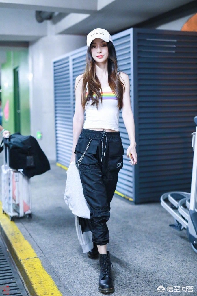 ▲工装裤今年很流行,初秋穿工装裤配短靴是不错的。这是Angelababy 杨颖今天的机场街拍,穿一件白色紧身小背心搭配了一件黑色工装裤,脚上是黑色马丁靴。手里拿了一件浅蓝行的运动风外套。这样搭配特别酷,时尚休闲又有街头感。