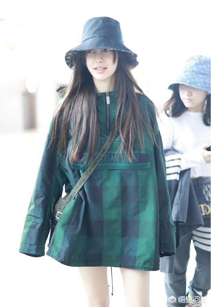 ▲还是杨颖,前几天穿了一件绿色格子的宽松运动风外套,长度堪比短裙,里面穿了什么不知道。你可以搭配T恤和牛仔短裤。头戴一顶大帽子。时尚好看又很潮。