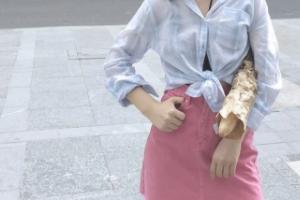 衬衫是我们春夏季穿搭中很实用的单品,百搭又好看,浅蓝色衬衫搭配一条粉色裙子,简单、大方又很显少女感。