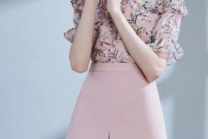 粉色和白色是很百搭的两种颜色,白色荷叶边上衣设计很洋气,搭配一条粉色裙子,很显女人味。